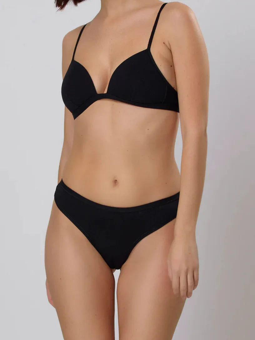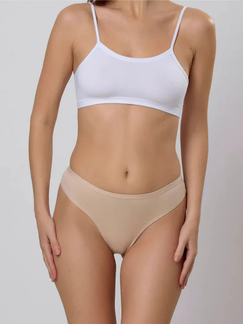 Brasiliana in cotone modal, liscia al tatto ed estremamente piacevole da indossare. Rifiniture con bordi in tessuto che non segnano e non stringono. Retro doppiato con cucitura centrale che dona un taglio modellante e sensuale esaltando le curve di ogni donna.