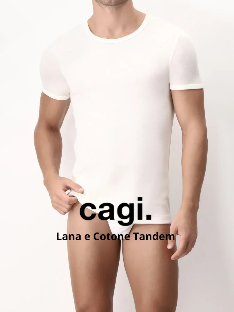 CAGI - T-shirt Uomo Girocollo in Lana e Cotone - 5330