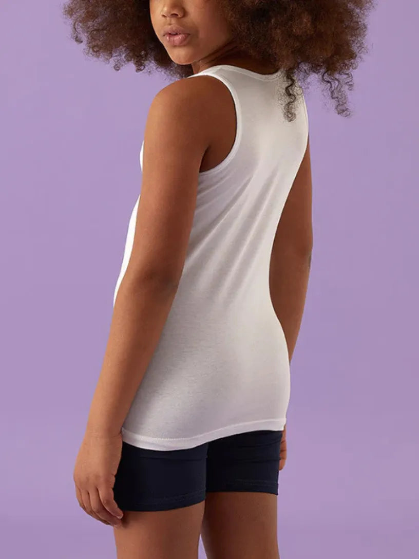 Canotta bimba spalla larga. Realizzata in cotone elasticizzato e traspirante, ideale per assicurare comfort e freschezza durante le stagioni calde. La sua ottima vestibilità si adatta perfettamente alla pelle delicata delle bambine, garantendo libertà di movimento e una sensazione di morbidezza costante. Disponibile in diversi colori, è una scelta versatile e pratica per il guardaroba quotidiano.