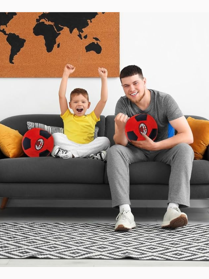 Cuscino decorativo a forma di palla ufficiale dell'A.C. Milan con diametro di 22 cm. Perfetto per aggiungere un tocco di stile rossonero a divani, poltrone e letti senza ingombrare gli spazi. Realizzato con materiali di qualità, è completamente lavabile per una manutenzione semplice e pratica. Ideale come regalo per i tifosi milanisti di tutte le età, combina funzionalità decorativa e praticità in un unico prodotto.