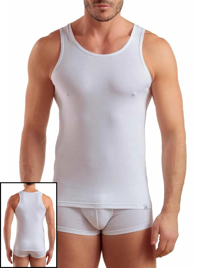Questa canotta da uomo realizzata in cotone bielastico, offre una vestibilità aderente e confortevole. Il tessuto di alta qualità garantisce traspirabilità e durata, ideale per chi cerca un capo versatile e resistente.
