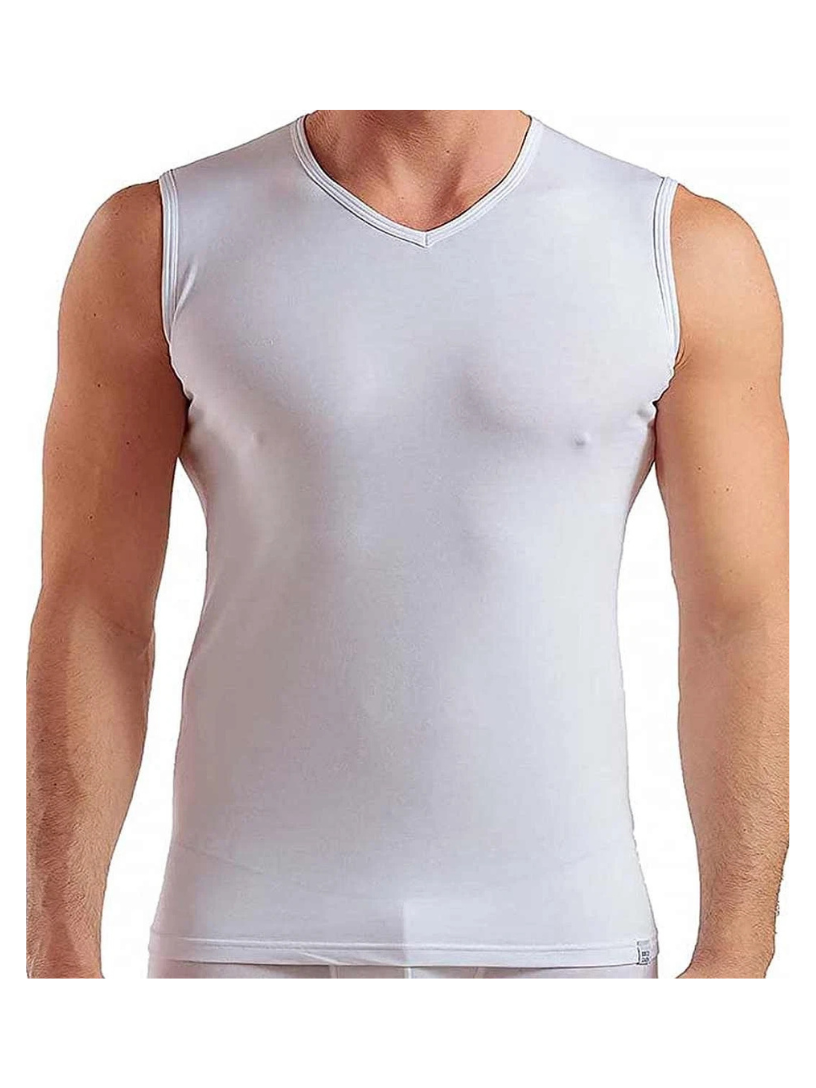 Smanicato uomo realizzato in cotone bielastico, offre una vestibilità aderente e confortevole. Il tessuto di alta qualità garantisce traspirabilità e durata, ideale per chi cerca un capo versatile e resistente.