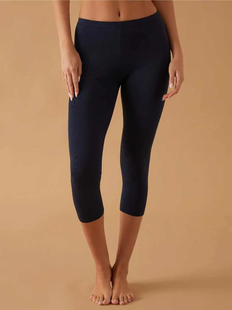 Leggings estivo modello capri, in fresco cotone stretch. Traspirante ed elasticizzato, per garantire un'ottima vestibilità e adattabilità a tutte le forme. Comodo e versatile, ideale per abbinamenti sportivi e casual. Un capo immancabile nel guardaroba di ogni dea.