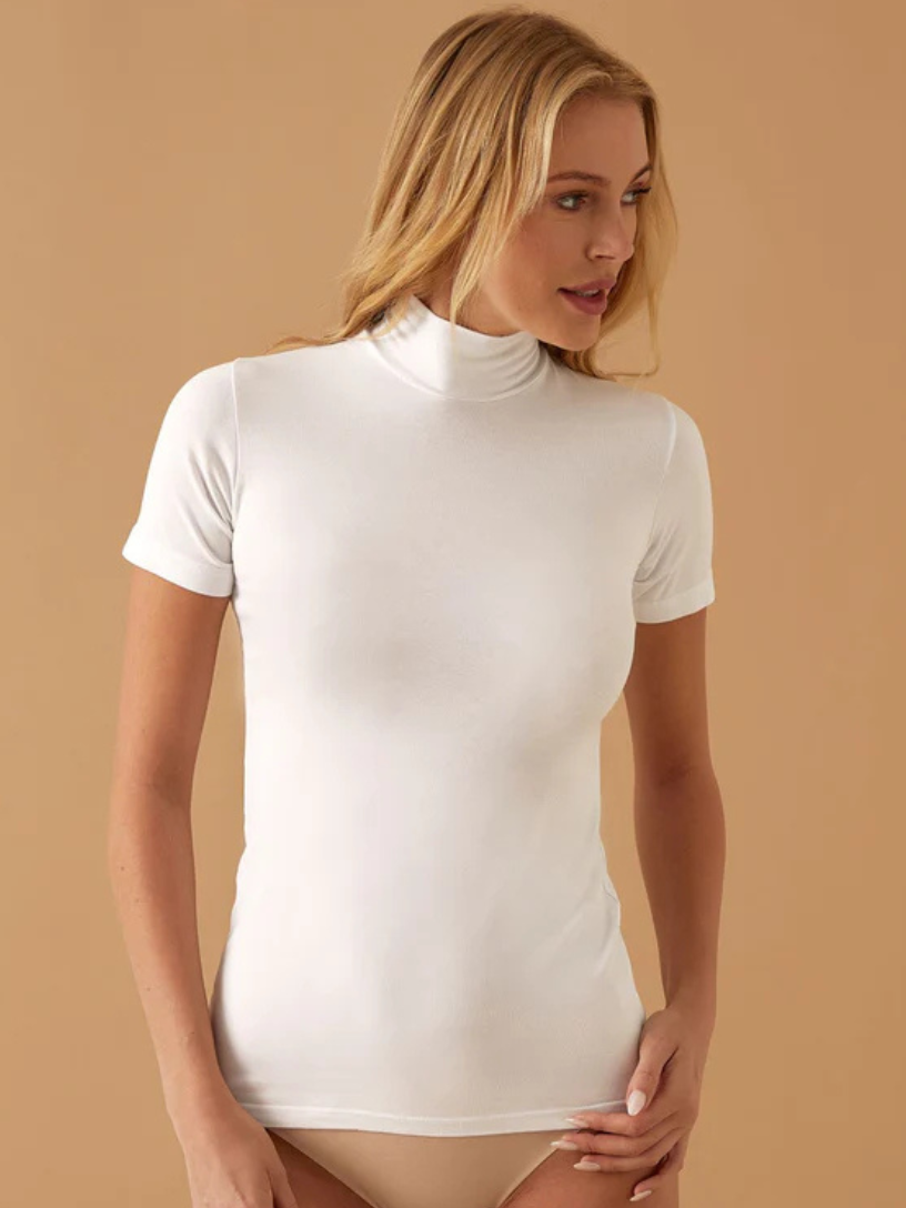 Lupetto mezza manica, realizzato in cotone elastico. Completamente adattabile alle curve del corpo, ideale come raffinato sotto giacca. Massimo comfort e ottima vestibilità per un piacevolissimo effetto sulla pelle.