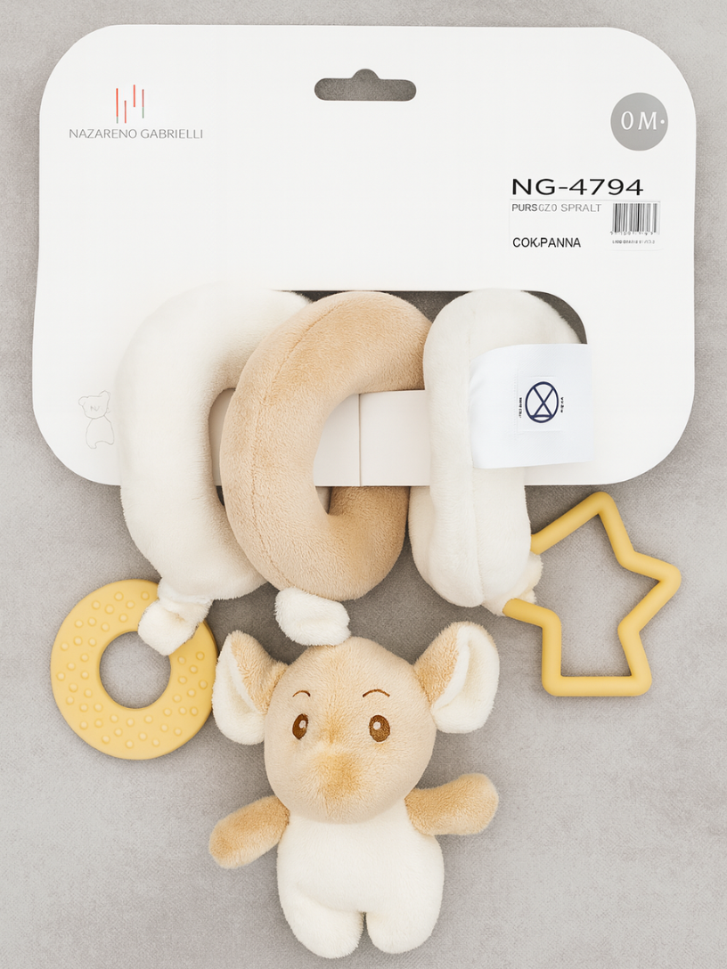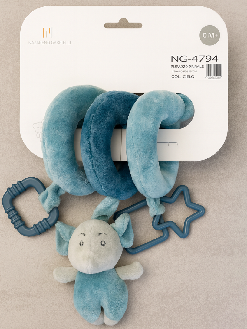 Il pupazzo a spirale con elefantino Nazareno Gabrielli è ideale per culle e carrozzine, offrendo un gioco semplice e stimolante per i più piccoli. Le formine incluse favoriscono lo sviluppo tattile e visivo, rendendolo un regalo pratico e di qualità per neonati.