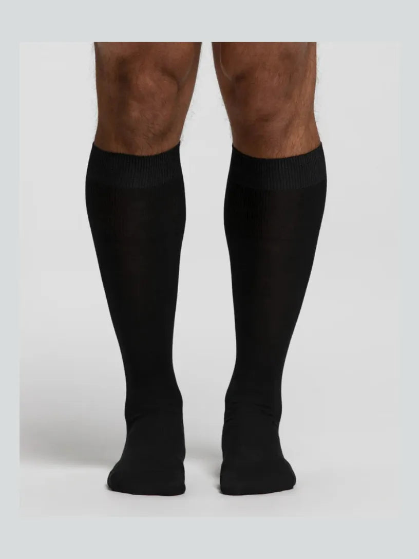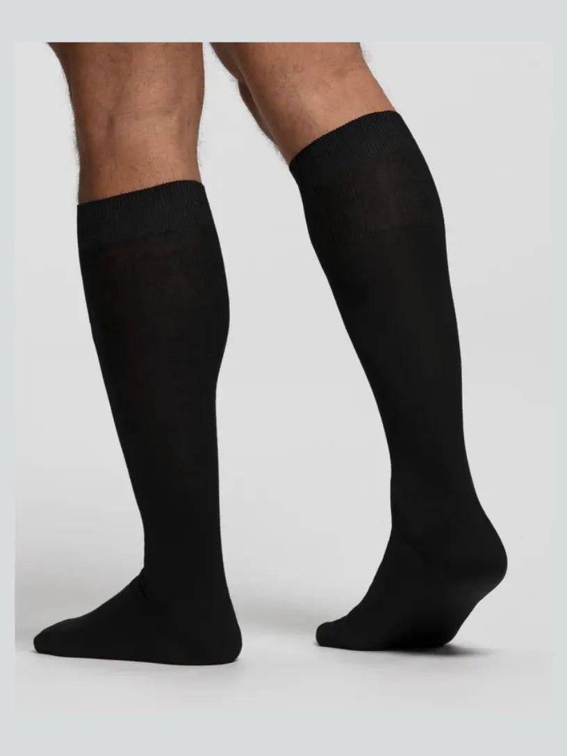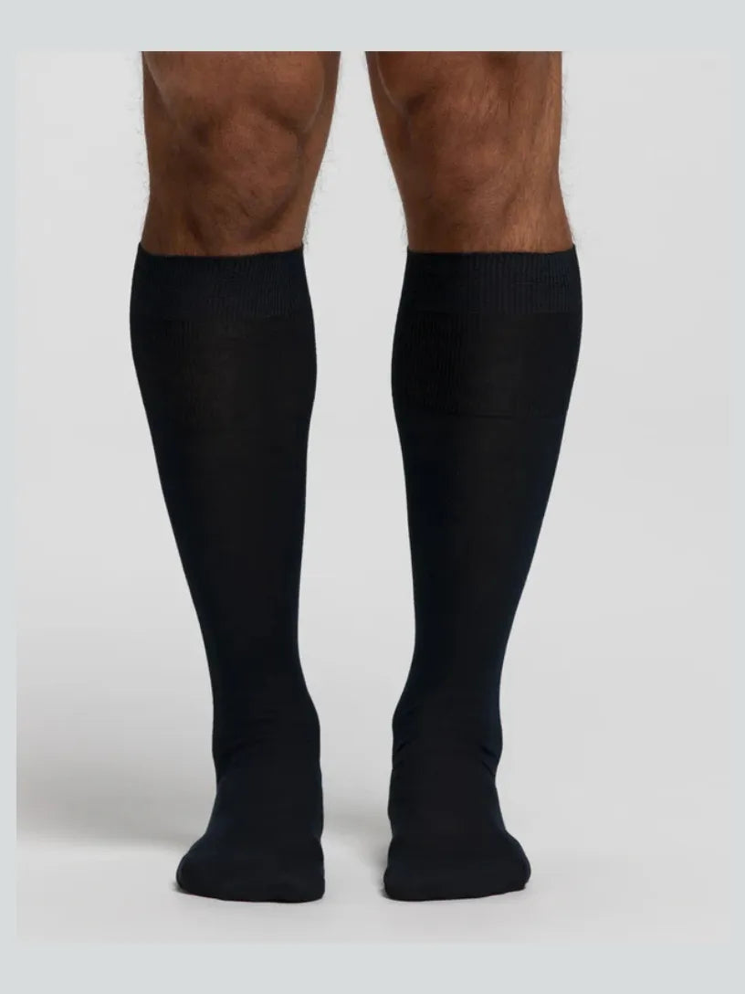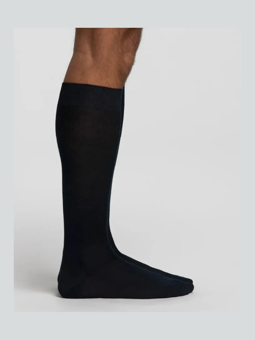 Calza lunga da uomo in Filo di Scozia liscia, con morbido polsino elasticizzato che non stringe e non lascia segni sulla pelle. Stile elegante, versatile e classico, fresco e leggero, è comodo e confortevole al piede tutto l’anno, mantenendo alto il livello di comfort.