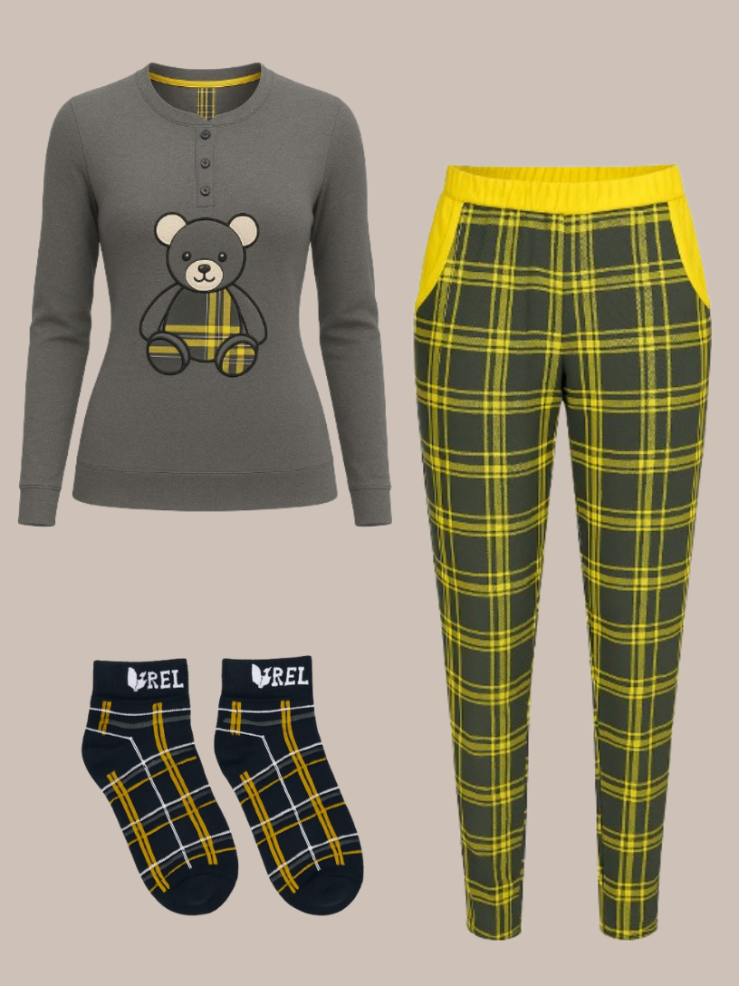 RELIABLE - Pigiama donna in caldo cotone + calzini - DIONISIA
