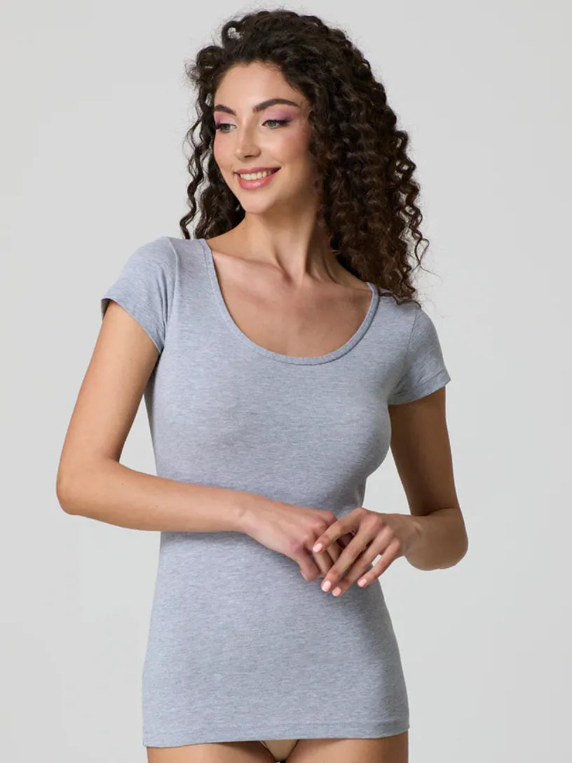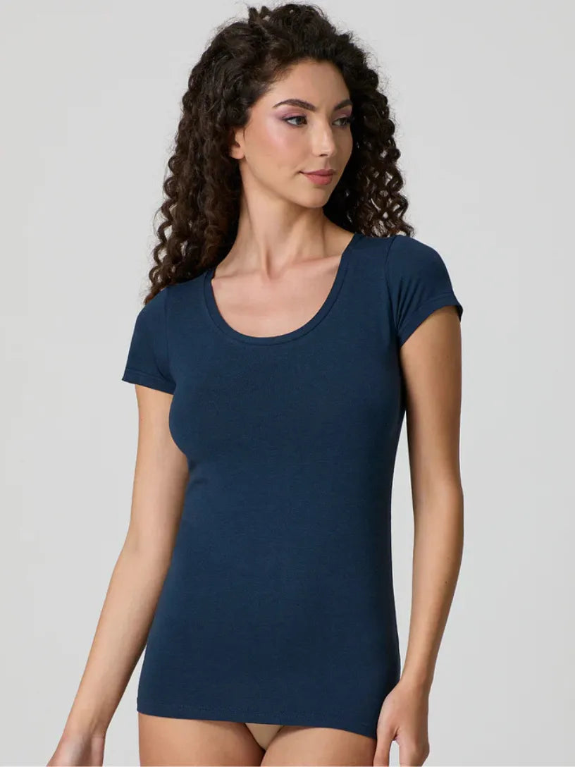 T-shirt Donna Scollo Tondo in Cotone Modal Jadea 4181